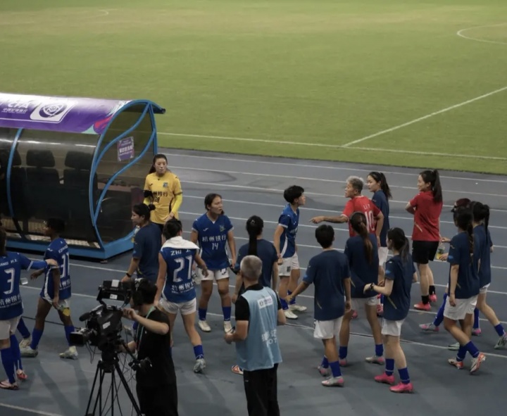 2025年8月24日,在杭州临平区体育中心体育场进行的女超联赛第十八轮第108场浙江杭州女足与重庆永川茶山竹海女足的比赛后,